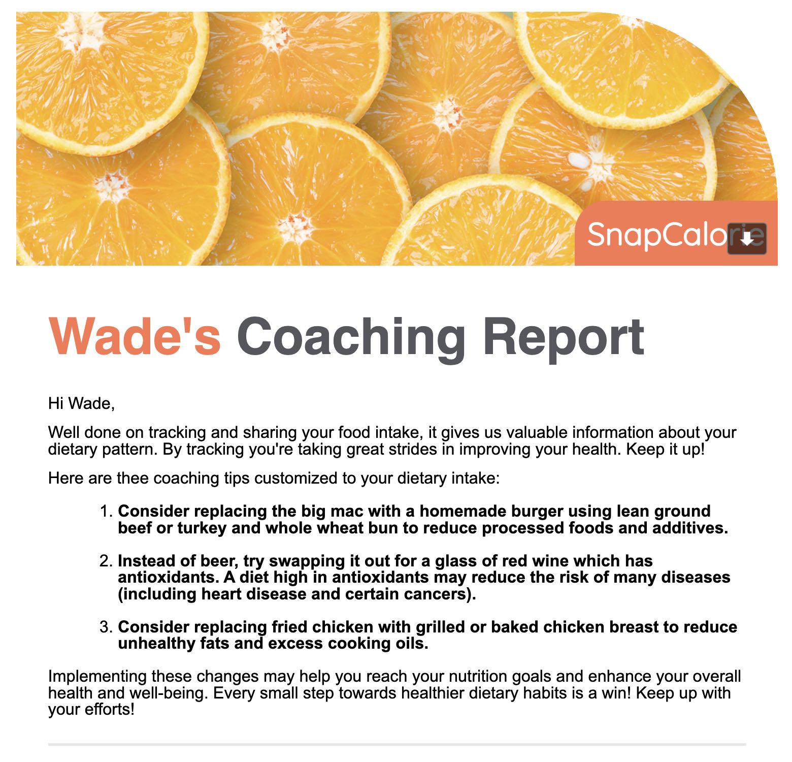 At SnapCalorie, we are committed to providing you with cutting-edge tools and features to help you achieve your nutrition goals effortlessly. We are excited to introduce our latest innovation - "Coaching Reports." These personalized nutrition reports, powered by our advanced AI nutritionist, take your meal logging to the next level, offering customized insights to optimize your eating habits